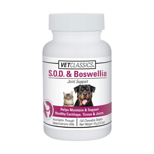 Works alongside glucosamine to increase joint fluid and cushion, minimizing stiffness in aging or arthritic pets.